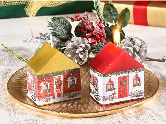 Scopri la magia del Natale con le nostre candele a forma di casetta! Realizzate con un tetto colorato in rosso oppure oro, questi accoglienti accessori natalizi portano un tocco di allegria a qualsiasi ambiente. I dettagli decorativi e lo stoppino centrale garantiscono una lunga durata e un'atmosfera incantata.