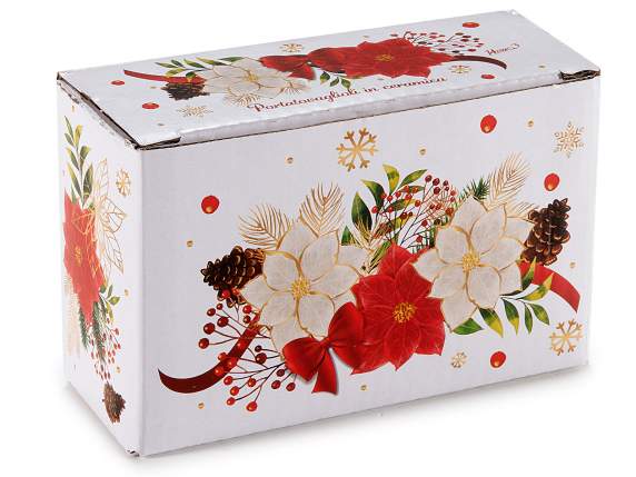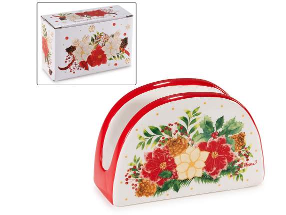 Il Portatovaglioli Natalizio è un elegante accessorio per la tavola durante le festività natalizie. Realizzato in ceramica colorata con una stampa a tema, misura cm 11,5 x 4,5 x 7 H ed è confezionato in una scatola regalo cm 12 x 5 x 7,5 H. Dà un tocco di stile e festività alla tavola e può essere anche un ottimo regalo per amici e familiari.
